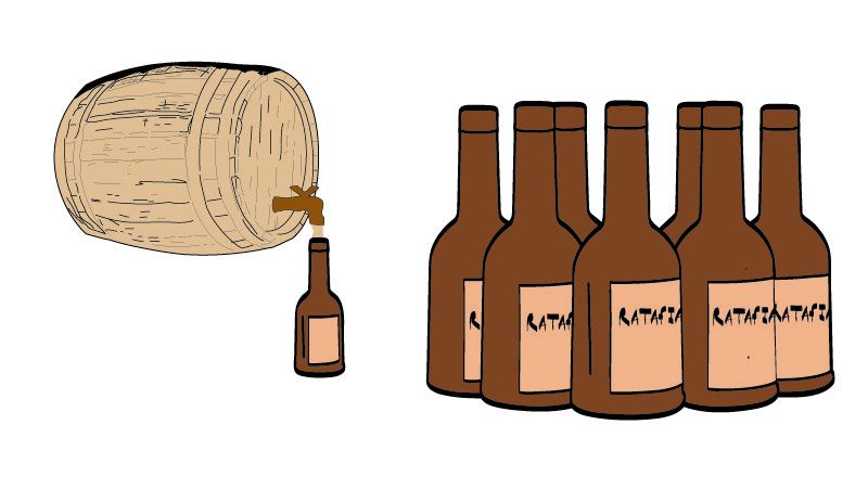 Aquestes fórmules arriben a les masies. Cada pagès elaborava la seva pròpia ratafia i formava part de les múltiples begudes que es consumien. Cadascú donava el seu toc especial al licor, un secret ben guardat que passava de pares a fills.
