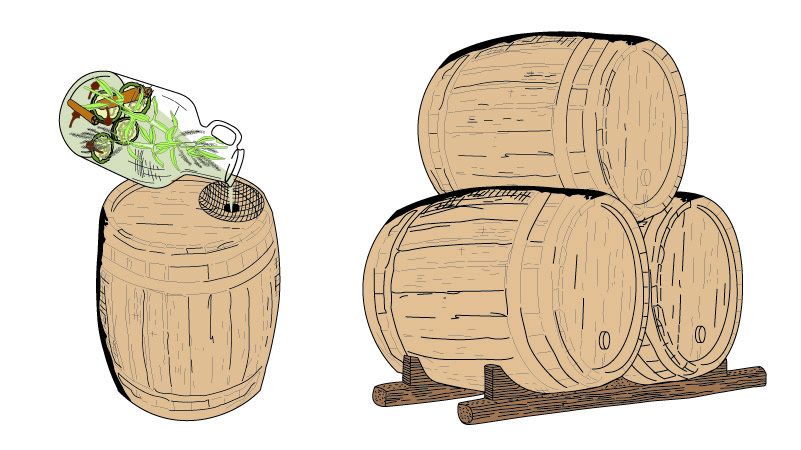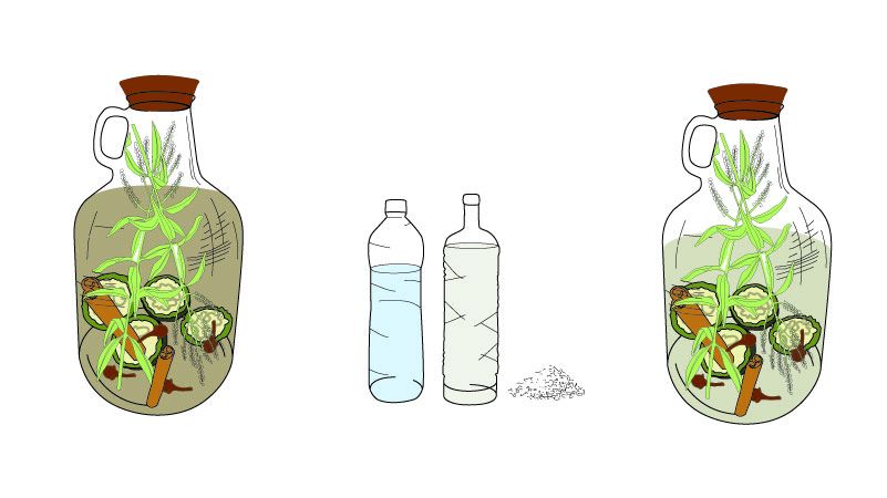 El producte resultant de la maceració es sotmet a un envelliment durant un període mínim de tres mesos en recipients de fusta.